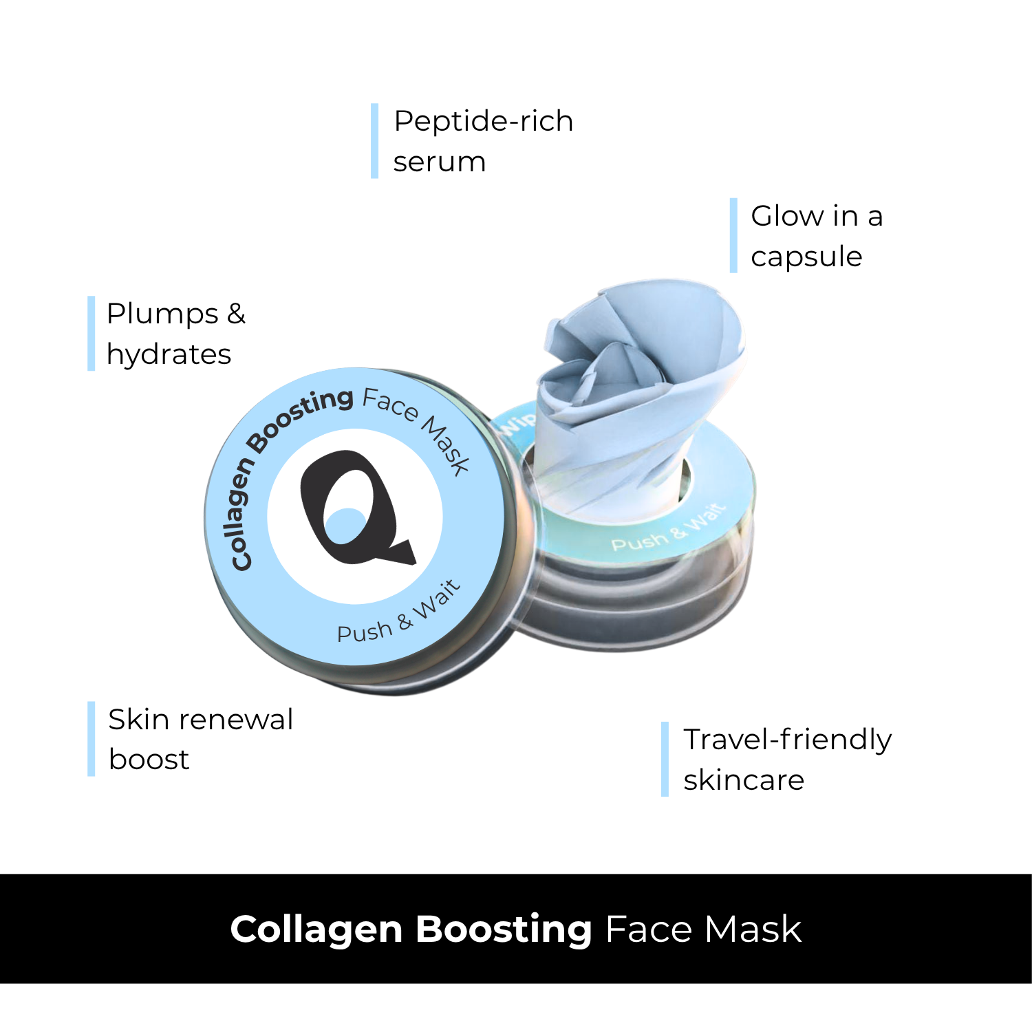 شدي وأحيي بشرتك مع مناديل مشبعة بسيروم غني بالكولاجين المتحلل وكابرويل تيتراببتيد-3 ومستخلص البروبوليس. هذه المناديل ترطب بكثافة وتهدئ، تاركة البشرة ممتلئة ومشرقة ومتجددة.